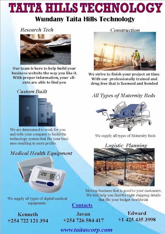 Medical Computers, Software, Printer, Blood Pressure Monitors Machines, Incubator and more. Taita Hills Technology, Inc Authorized Consultants are working in finding ways to helping and bring you the best services local from USA to Kenya including others countries. Join us on this movement in supporting our communities into better healthy life.